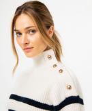 Vous ne résisterez pas au confort de ce pull pour femme LuluCastagnette. Largement inspiré de la marinière avec ses rayures et ses boutons sur l'épaule, le pull trouve sa place dans tous vos looks citadins : avec un jean slim, une jupe courte trapèze ou un pantalon de tailleur ajusté. Une belle pièce douillette pour passer l'hiver au chaud et avec style.