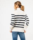 Pull marinière rayé en gosse maille col cheminée femme - LuluCastagnette bleu fonce