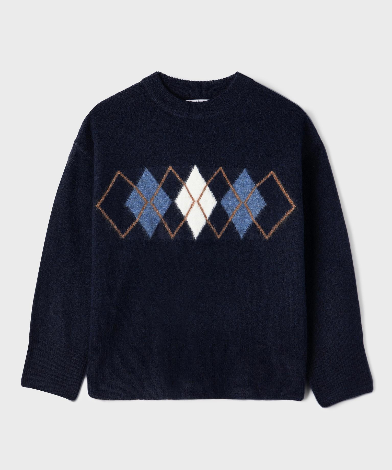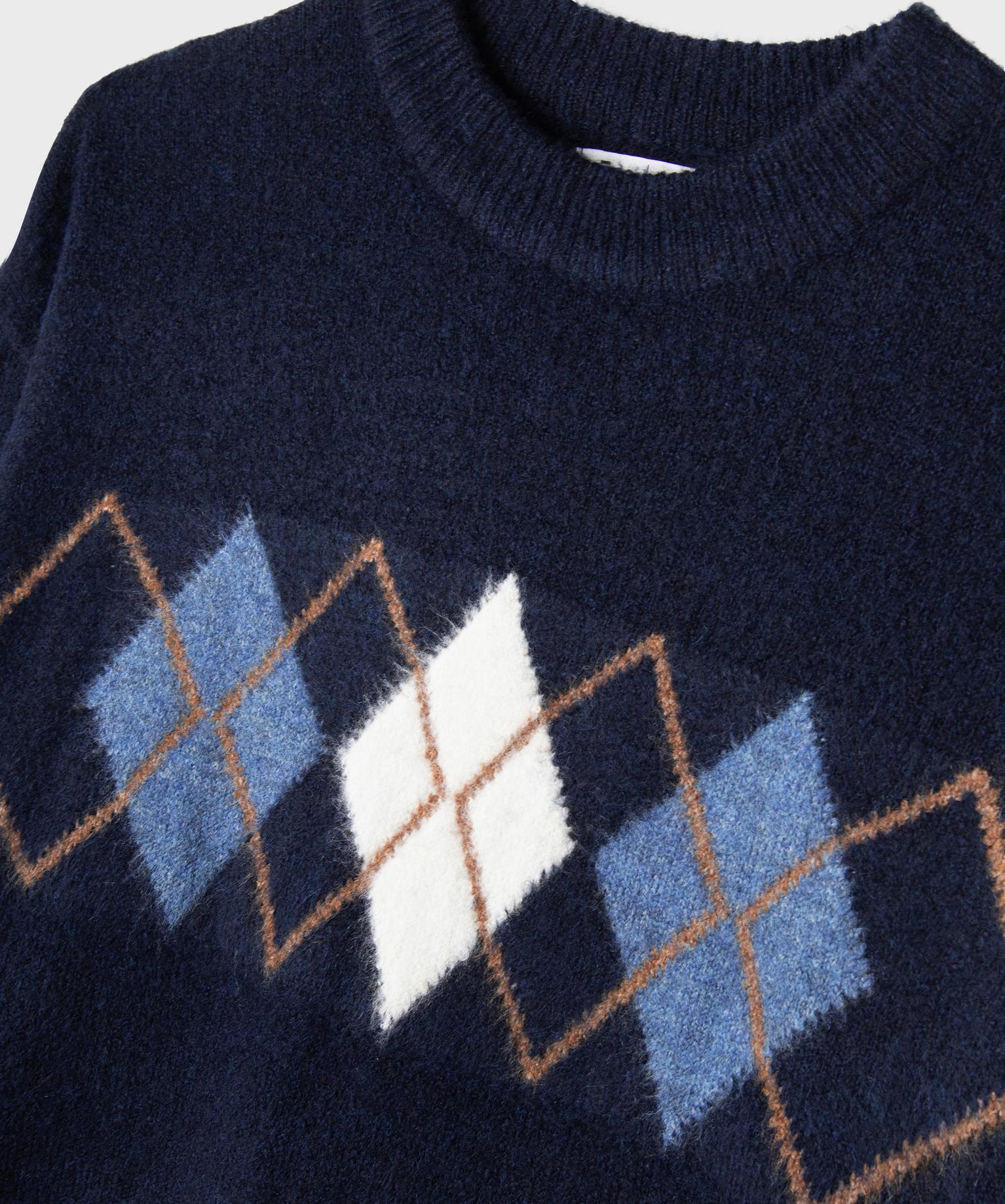 Pull oversize avec motif sur le buste fille bleu fonce