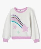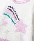 Pull pailleté avec sequins brodés et motifs fille ecru