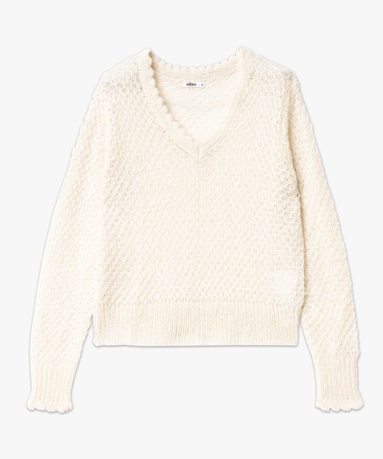 Pull pailleté col V en maille ajourée femme[MISSING] ecru
