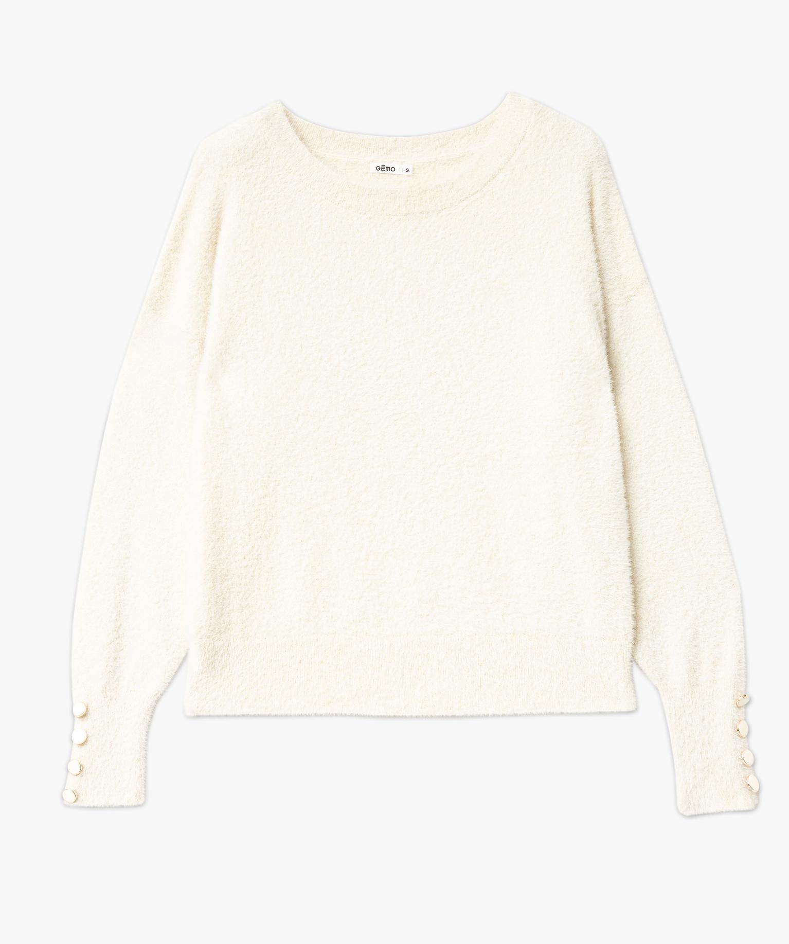 Ce magnifique pull pour femme séduit par le confort d’une maille poilue d'une douceur extraordinaire, rehaussée de fil pailleté pour un résultat chic et scintillant. Ce pull scintillant possède un large col rond qui met le port de tête en valeur et affiche une coupe loose accentuée par des épaules tombantes. Un pull de soirée très élégant, avec poignets resserrés par un bord-côte et décorés de boutons fantaisie. Il accompagnera vos tenues de soirées, s’associant aussi bien avec une jupe crayon qu’avec un jean enduit pour un look chic et scintillant.