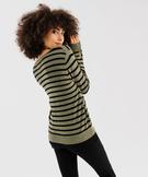 Pull rayé à col V avec boutons aux poignets femme kaki