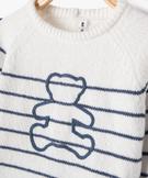 Look authentique et charme fou pour ce pull tricoté LuluCastagnette. Un pull bébé en maille toute douce, doté d'une boutonnière intégrale dans le dos, pour le style et pour un enfilage super facile ! On aime la sobriété des finitions, les fines rayures d'inspiration marinière, le grand ours Lulu brodé devant ainsi que les emmanchures raglan confortables. Un pull tout doux à moderniser avec un jean ou à rehausser d'un pantalon en toile colorée. Col rond en bord-côte.