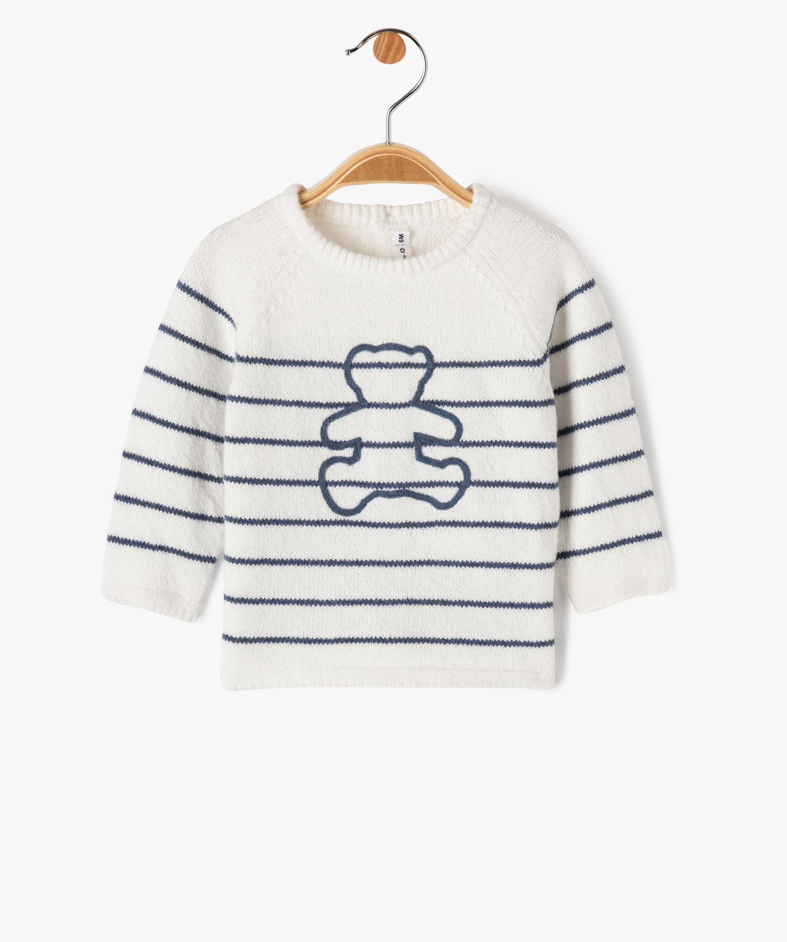 Pull rayé à dos boutonné bébé - LuluCastagnette gris