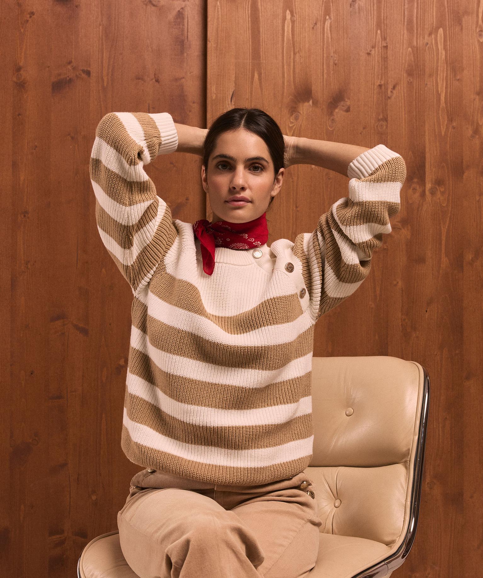 Pull rayé en côtes perlées esprit marinière femme - LuluCastagnette beige