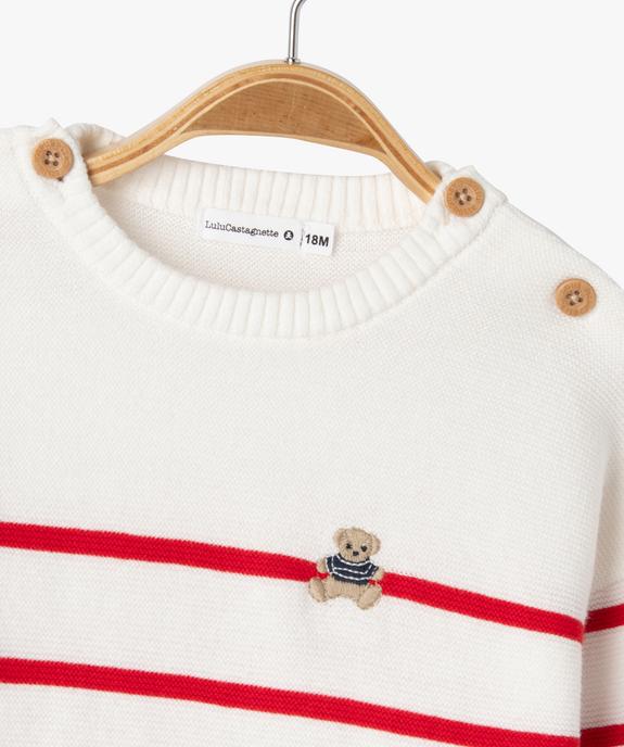 Pull rayé en fine maille bébé garçon - LuluCastagnette ecru