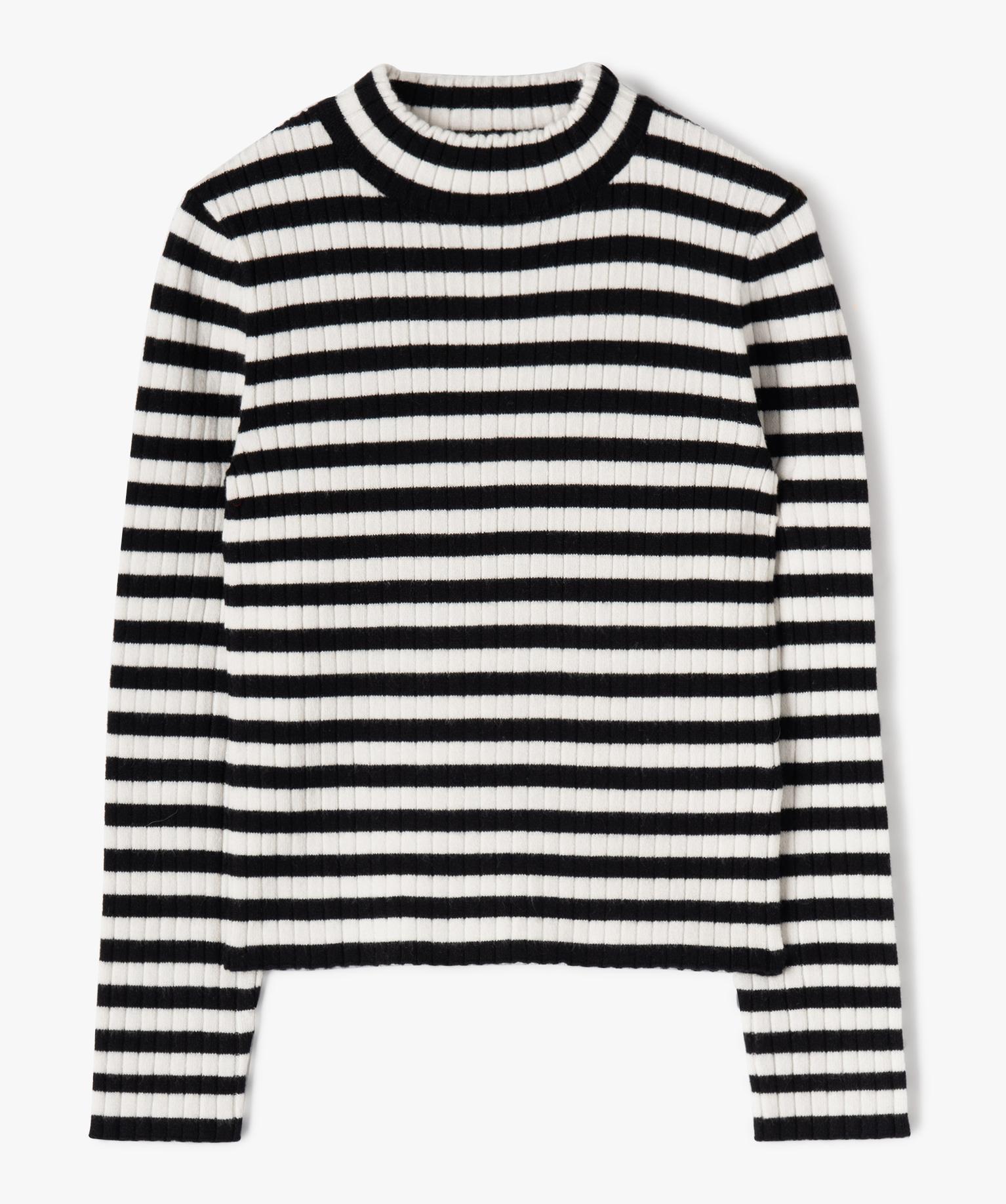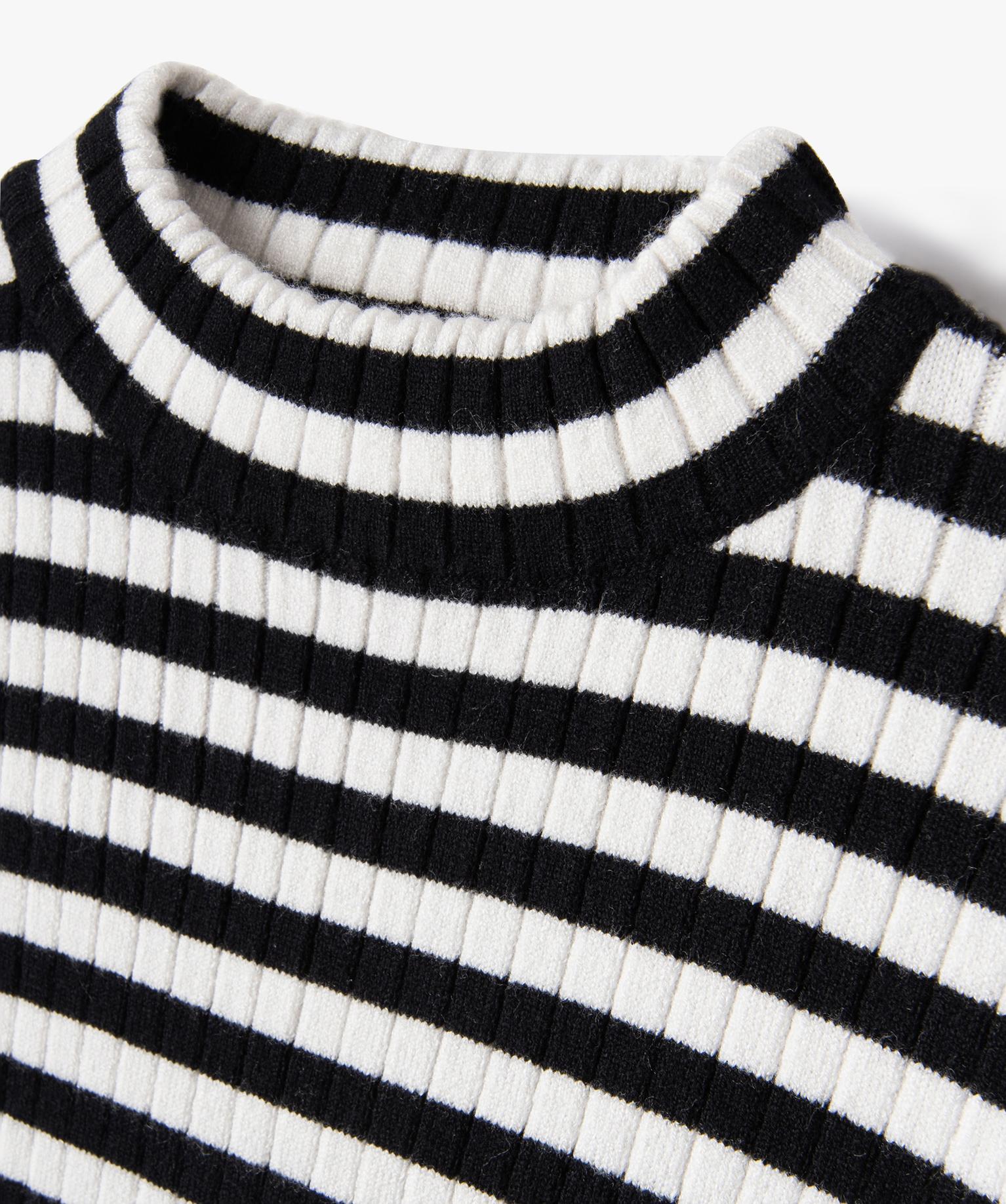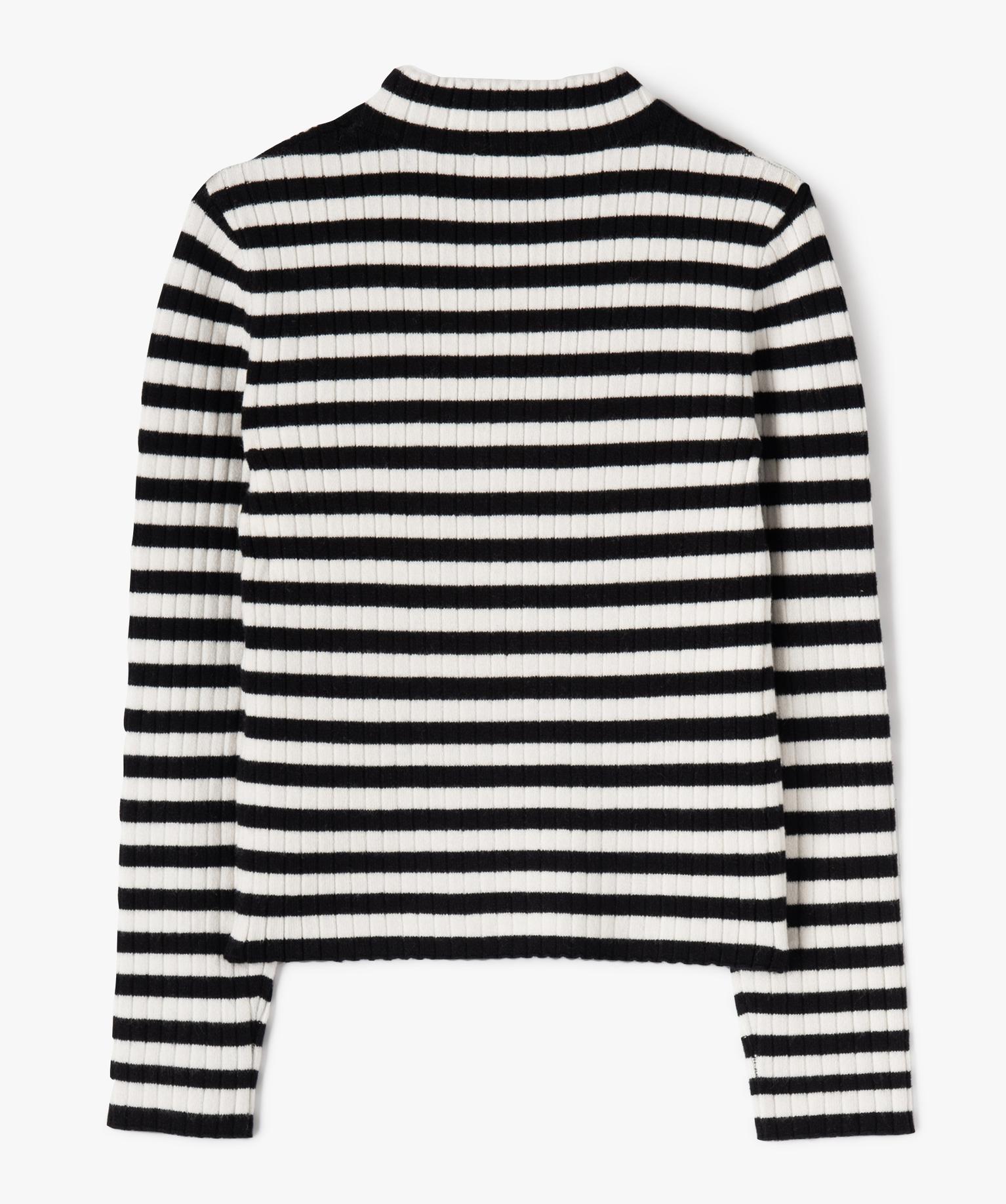 Laissez-vous séduire par l'élégance intemporelle de ce magnifique pull rayé. Un pull pour fille en maille côtelée extensible et confortable. Doté d'un col montant qui ajoute une touche de sophistication, ce pull ajusté incarne le parfait équilibre entre confort et style. Sa texture douce et agréable à porter offre une sensation de chaleur et de douceur, idéale pour les journées fraîches. Associez ce pull à rayures avec une jupe plissée ou un pantalon ample pour créer des tenues élégantes et décontractées, parfaites pour toutes les occasions.