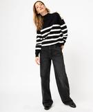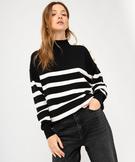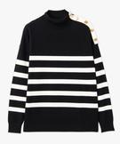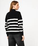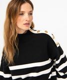 Pull rayé loose à col cheminée et boutons femme rayure noir / blanc
