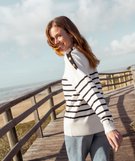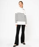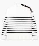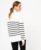 Un très joli pull femme long,, confectionné dans une maille viscose souple, extensible et un peu lourde pour un tomber impeccable. Avec son col cheminée, ses grands bord-côtes et ses gros boutons décoratifs sur l'épaule gauche, ce pull donne un coup de sophistication à la traditionnelle marinière. Un pull à porter avec un jean skinny, des low boots à talon et un blazer.