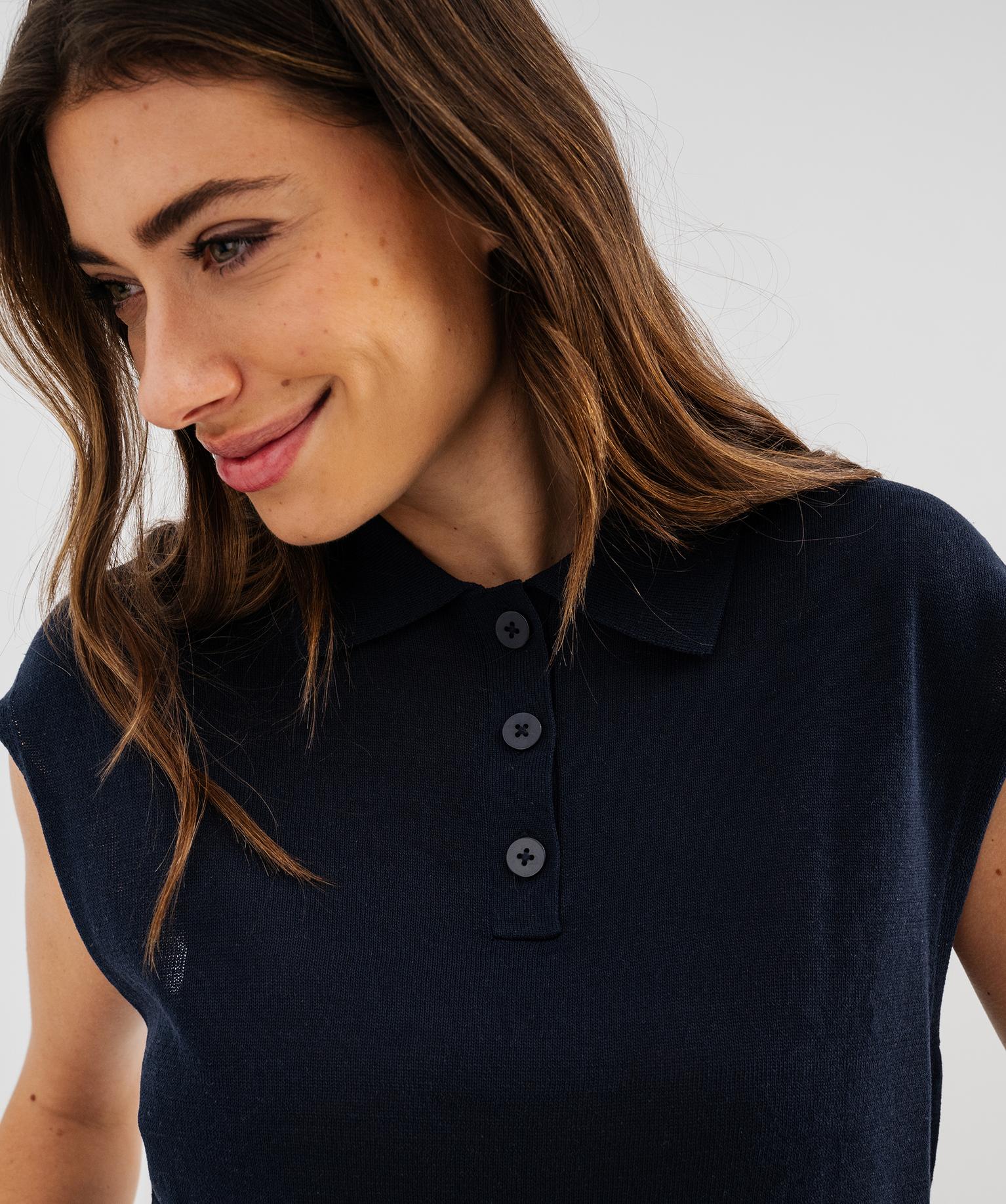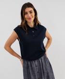 Pull sans manches à col polo en maille fine femme - LuluCastagnette marine