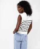 Pull sans manches à rayures en maille côtelée femme blanc