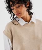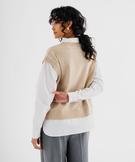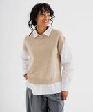 Pull sans manches et chemise 2 en 1 femme beige