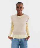 Réchauffez vos blouses amples et tee-shirt manches longues avec style grâce à ce pull sans manches femme ! Un pull sans manches en grosse maille, idéal pour un look à la fois cosy et féminin. Sa coupe ajustée et son col V créent une silhouette élégante. Le pull présente des finitions originales - côtelées et roulottées - au col et aux emmanchures. Il se porte idéalement par-dessus une blouse ample ou une chemise en soie pour un style layering très chic.