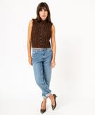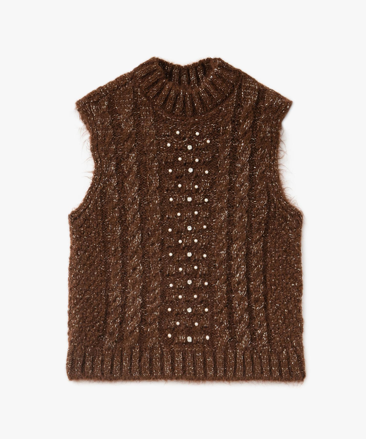 Le pull sans manches signe un retour en force ! Gémo revisite le modèle pour casser son côté premier degré en vous proposant une pièce douillette et ultra féminine ! Craquez pour le pull sans manches à la maille duveteuse tricoté avec un fil d'argent et rehaussée de perles et de strass sur l'avant. Un pull tendance, mais qui ne perd rien de son authenticité : il présente des torsades sur l'avant, ainsi qu'un col cheminé côtelé. À porter par-dessus une blouse en voile pour une tenue élégante.
