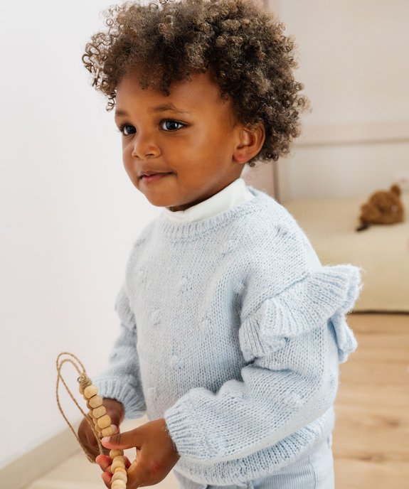 Pull scintillant avec volants sur les épaules bébé fille bleu
