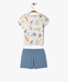 Offrez de beaux rêves à votre petit aventurier grâce à ce joli pyjama décoré d’animaux de la jungle. Un pyjama bébé garçon composé d’un tee-shirt à manches courtes imprimé et d’un short uni au coloris contrastant. Ce pyjama deux pièces est confectionné en coton pour garantir un maximum de douceur et de confort aux tout-petits. Short avec taille élastique. Haut avec col rond et boutons pression sur l’épaule.