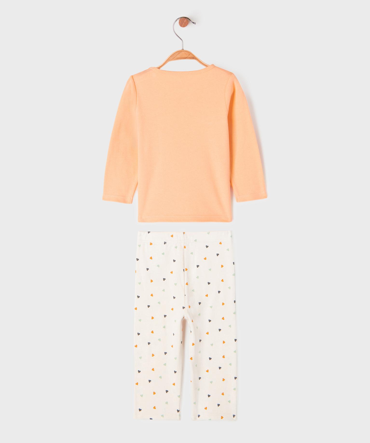 Pyjama 2 pièces bicolore en coton bébé fille orange