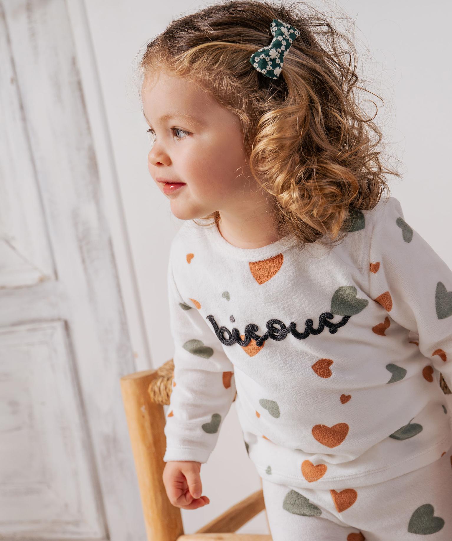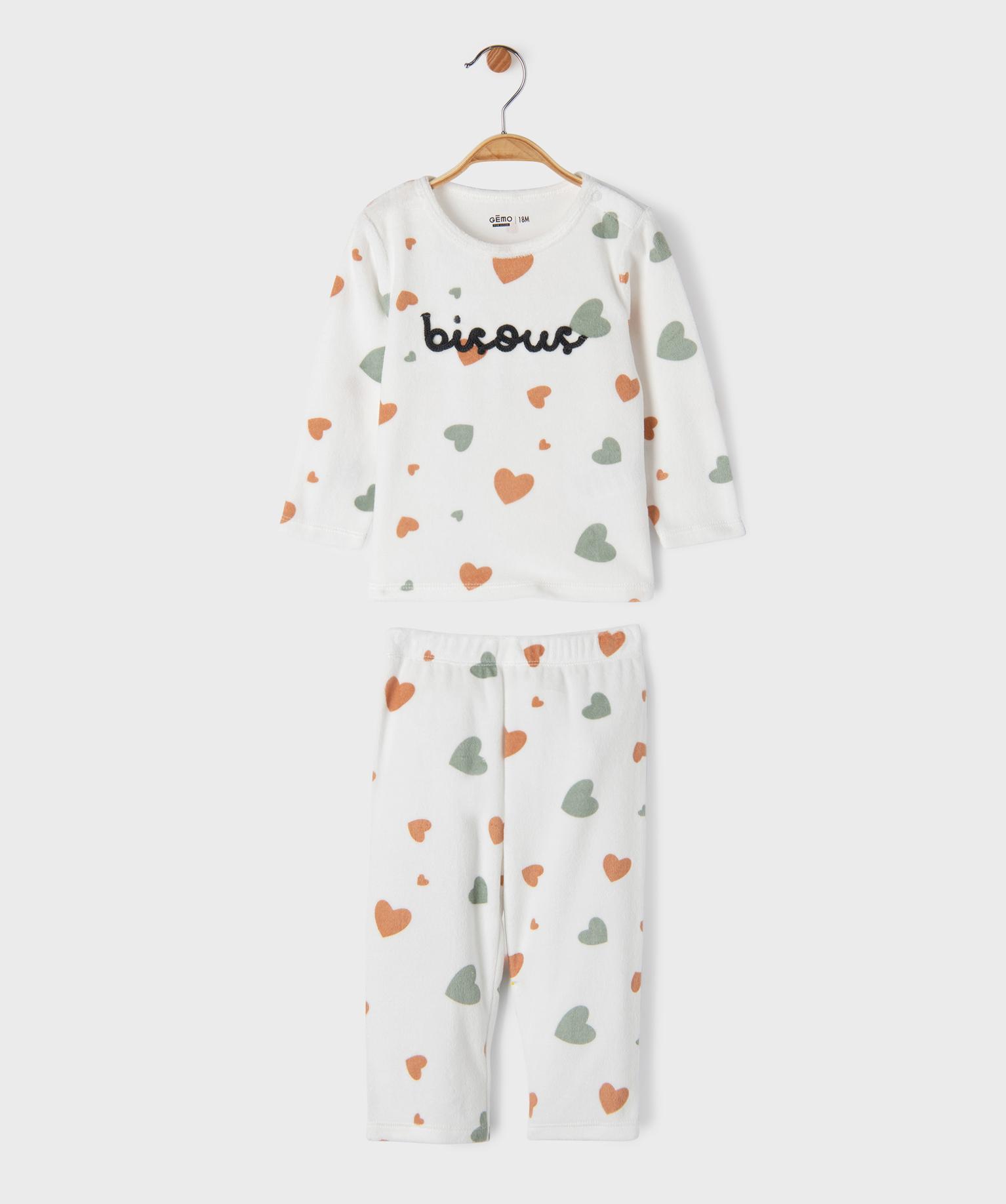 Pyjama 2 pièces en velours à motifs coeurs bébé blanc