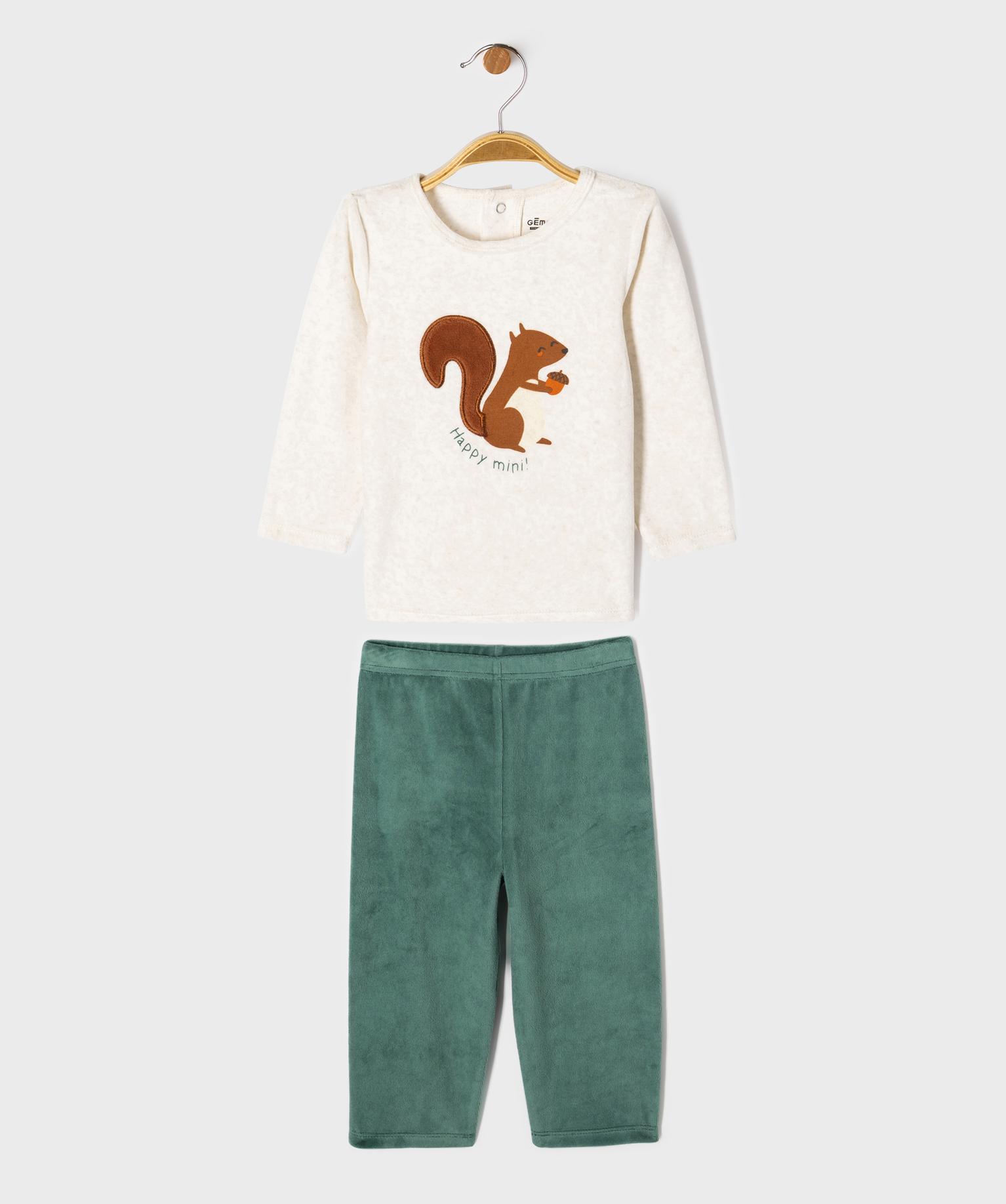 Pyjama 2 pièces en velours à motifs écureuil bébé garçon marron