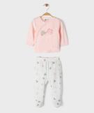 Pyjama 2 pièces en velours à motifs oiseaux bébé fille blanc
