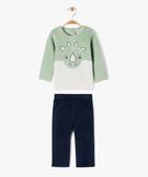 Pyjama 2 pièces en velours avec motif animal bébé garçon vert