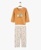 Pyjama 2 pièces en velours avec motifs maisons bébé garçon marron clair