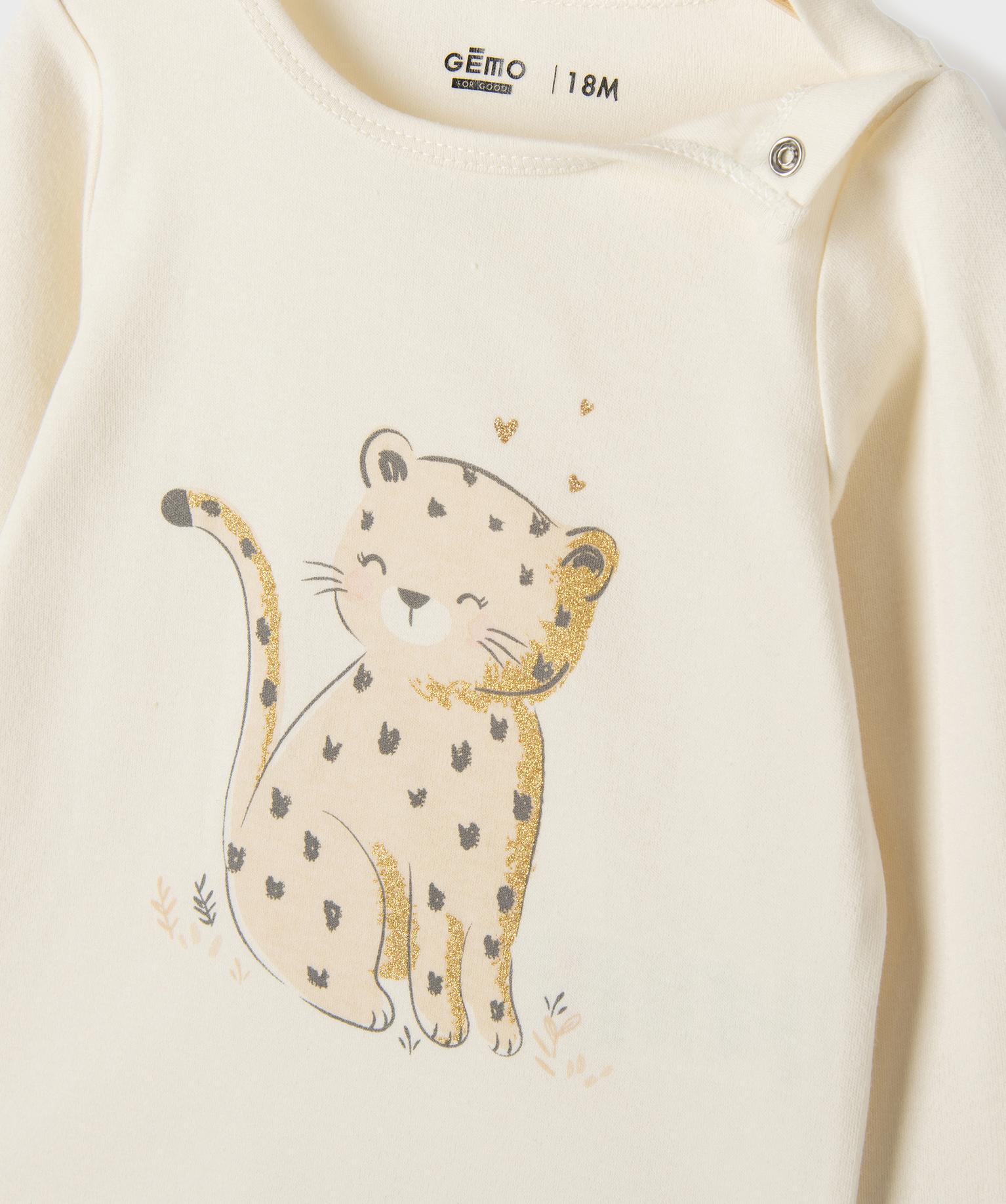 Pyjama 2 pièces motif léopard et pois pailletés bébé blanc