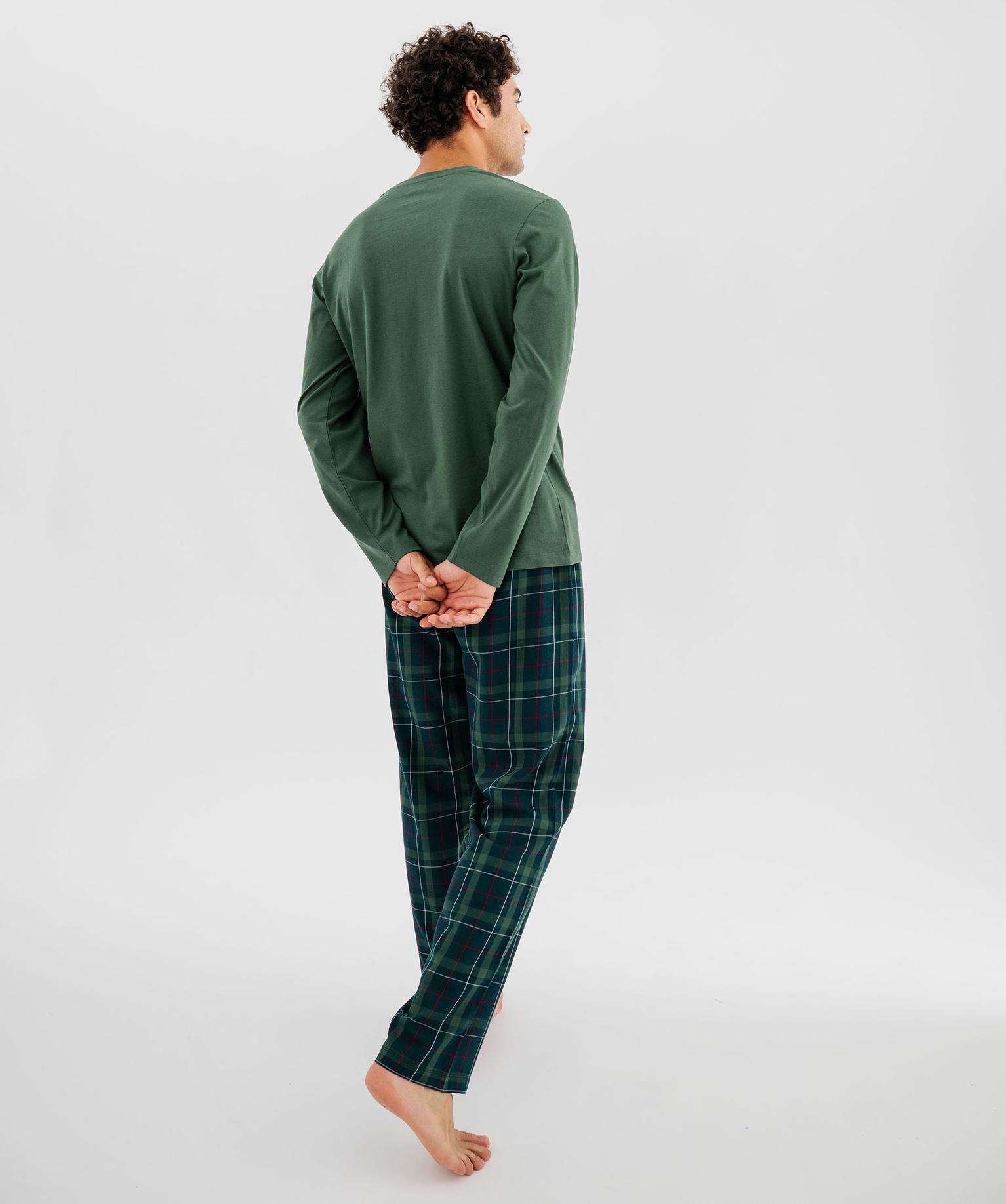 Pyjama à manches longues et pantalon à carreaux homme vert