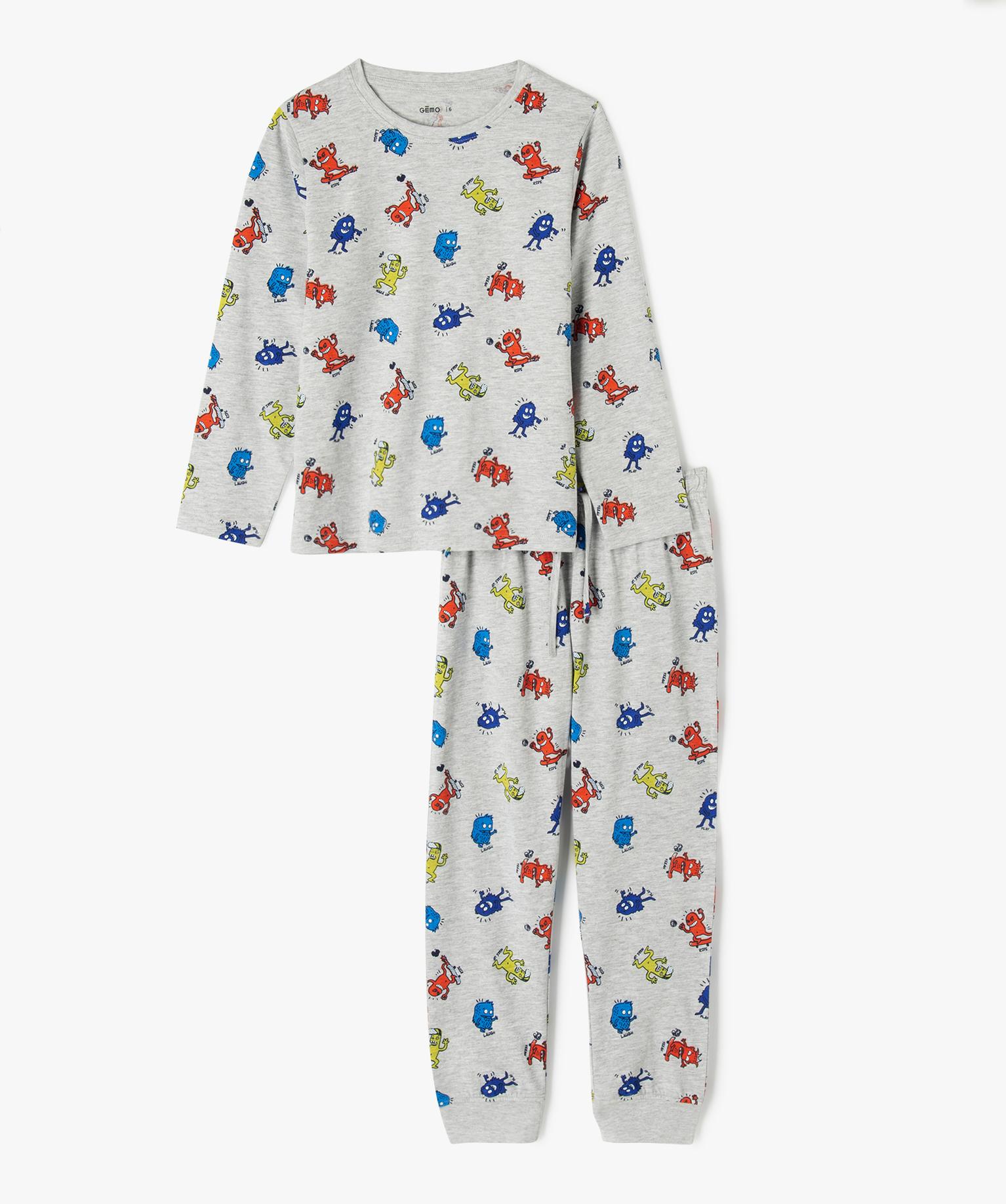 Ce pyjama garçon apportera une touche de gaieté dans le vestiaire homewear des enfants. Confectionné en coton et viscose, il est orné de nombreux petits monstres multicolores qui plairont aux enfants. Cet ensemble de nuit est composé d'un tee-shirt à manches longues et col rond, et d'un pantalon confortable avec une ceinture élastique ajustable par cordon coulissant. Parfait pour les petits garçons qui ont besoin de se dépenser, ce pyjama aux motifs pétillants les accompagnera dans des nuits réparatrices ! Chevilles resserrées par bord-côte.