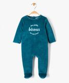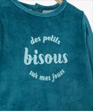 Pyjama bébé à pont-dos en velours avec message bleu fonce