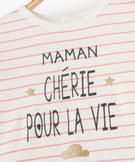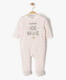 Ravissante version rayée du pyjama bébé ! Un dors-bien à rayures pastel, mises en relief par une inscription adorable en velours et des petits motifs célestes en paillettes dorées. Ce pyjama bébé est aussi charmant que confortable. Finitions biais uni au col et aux poignets, fermeture pont-dos par boutons-pression. Un dors-bien à intégrer dans le dressing de bébé ou à offrir en cadeau de naissance.