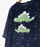 Pyjama bébé en velours imprimé dino avec ouverture pont-dos navy