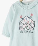 Pyjama bébé fille en velours avec motif et volant sur le col bleu