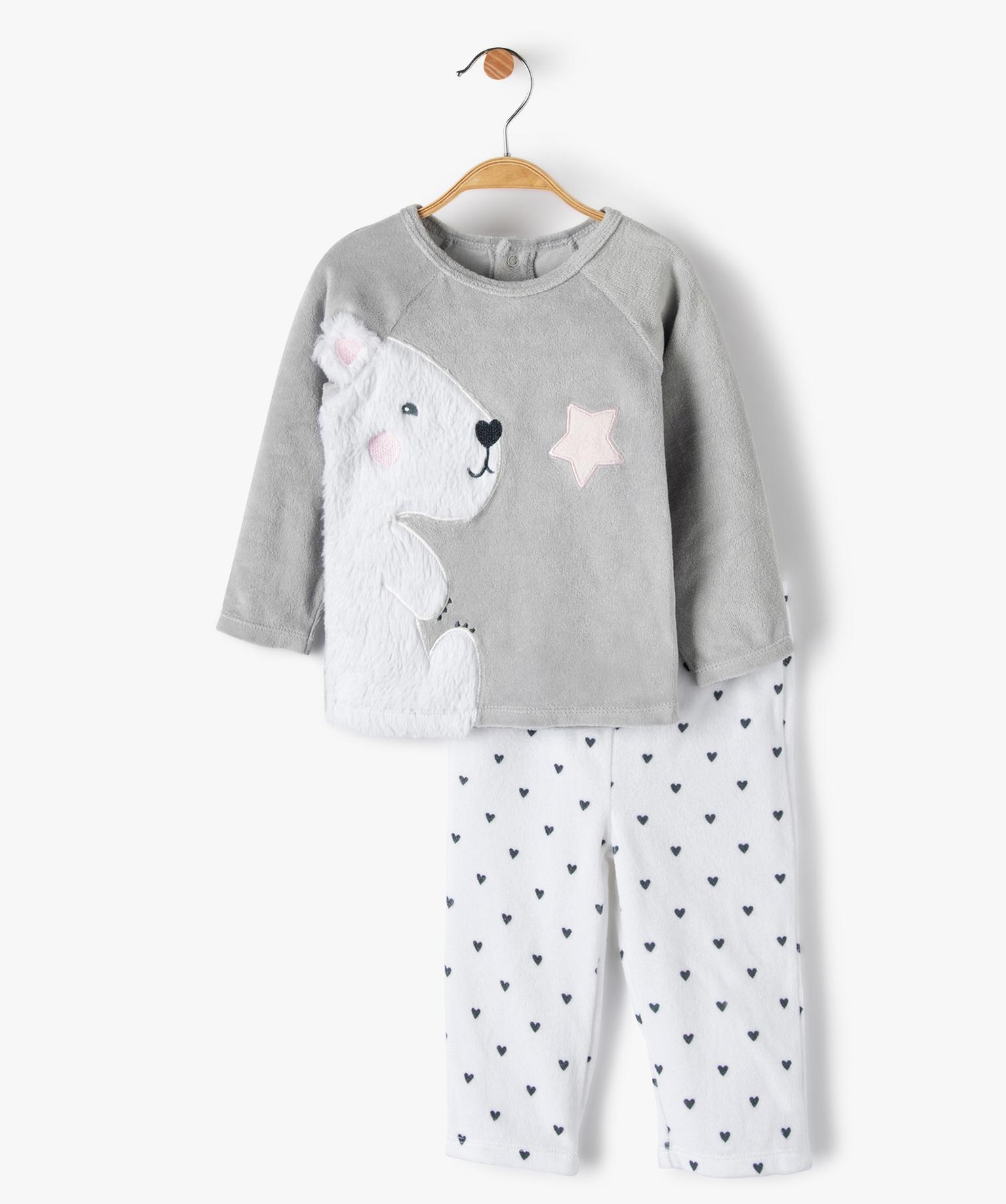 Pyjama bébé filles 2 pièces avec motif ourson gris