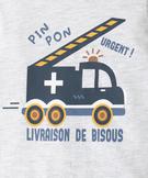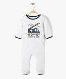 Pyjama bébé garçon en velours avec motif camion de pompiers gris clair