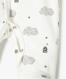 La pièce layette essentielle à glisser dans la valise de maternité : le pyjama de naissance pour bébé ! Un dors-bien décoré de petits motifs nuages, maisons et étoiles, avec un petit nuage brodé sur la poitrine. Il possède une ouverture intégrale en Y par boutons-pression devant. Ce système d'ouverture facilite la vie des parents et des nouveau-nés, puisqu'elle permet un habillage et un change faciles, sans trop de manipulations. Côté douceur, Petit Béguin signe ici une grenouillère en velours composée majoritairement de coton biologique.