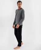 Un pyjama élégant et très confortable qui vous accompagnera dans toutes vos soirées cocooning. Composé de coton, il vous procure beaucoup de douceur. Cet ensemble de pyjama homme se compose d’un haut à manches longues à fines rayures avec un col V contrastant, et d’un pantalon ample uni avec taille élastiquée. Un pyjama bicolore à adopter sans hésiter pour des nuits plus douces.
