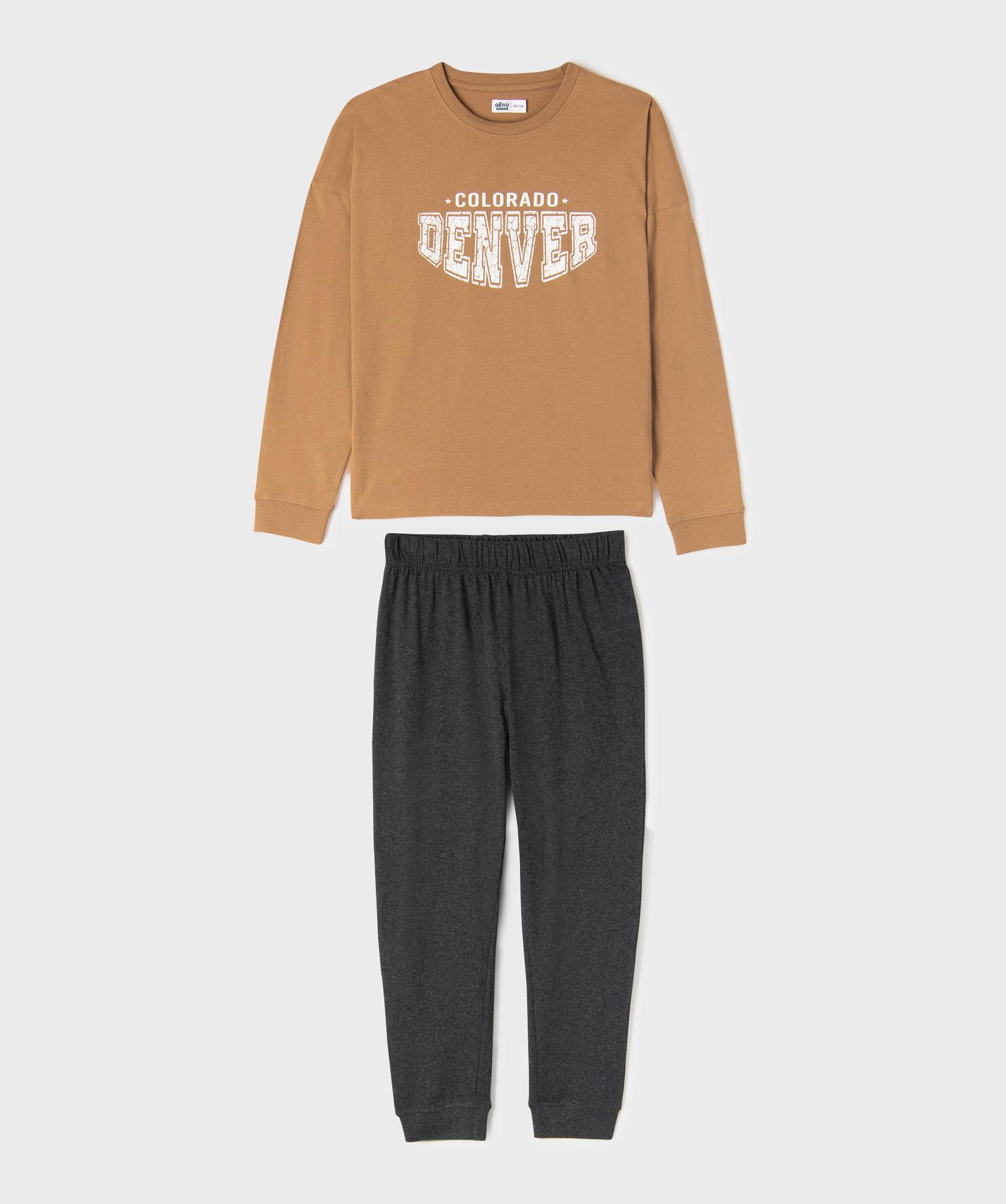 Pyjama bicolore avec inscription garçon marron