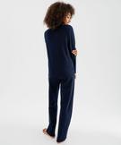 Pyjama deux pièces en coton femme : chemise et pantalon bleu fonce