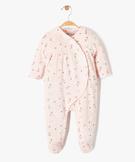 Pyjama dors-bien bébé en velours fleuri ouverture devant rose