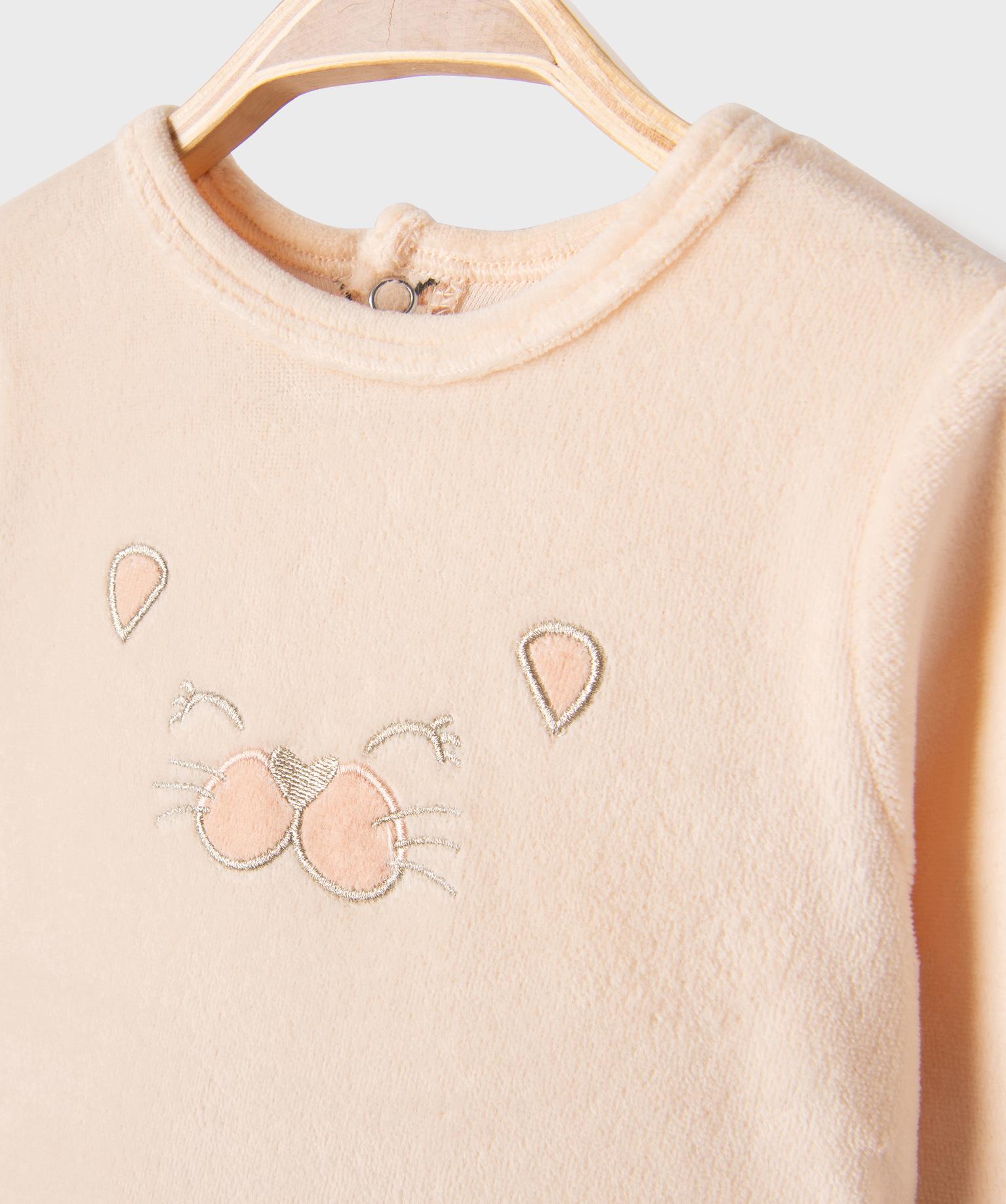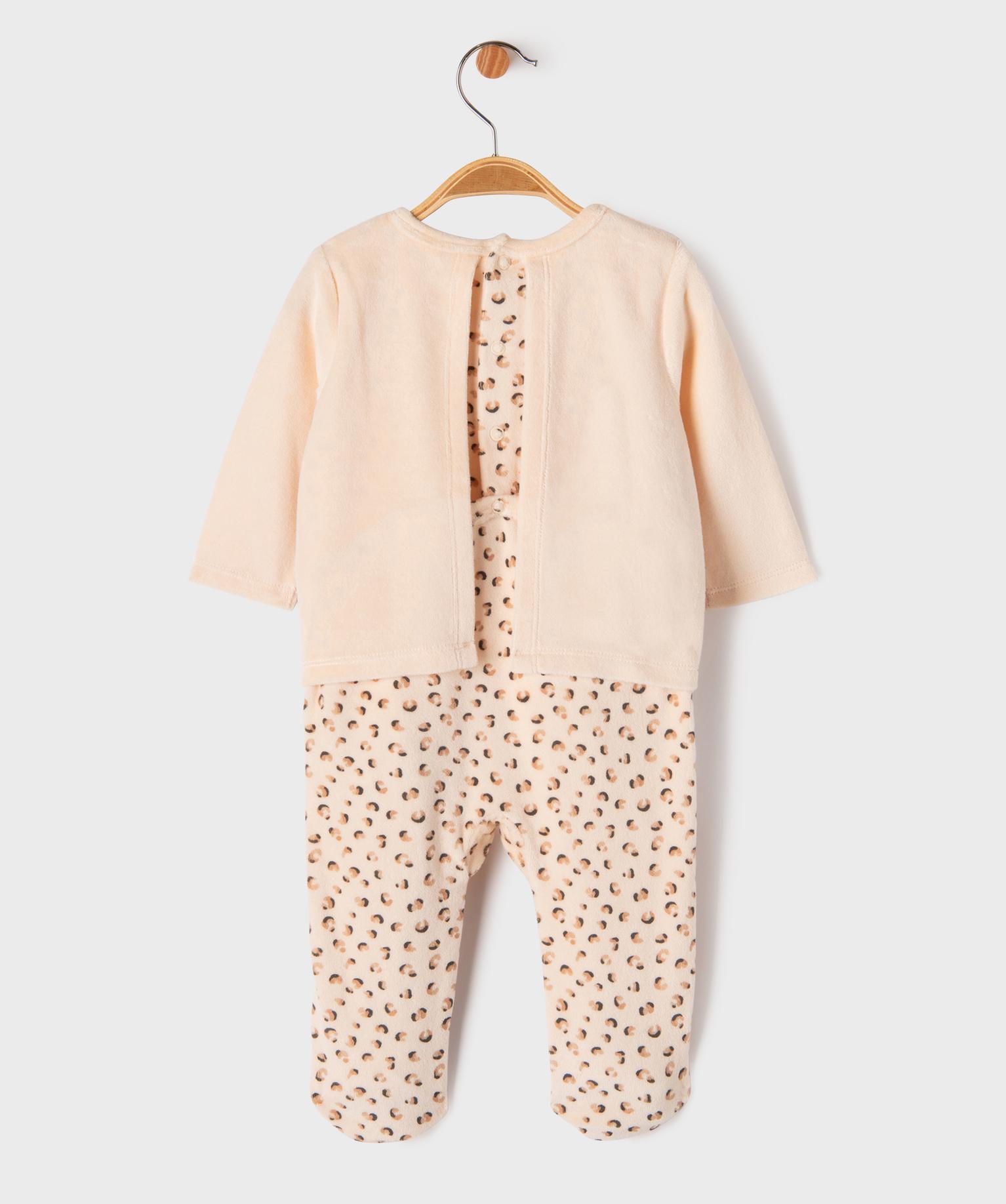 Pyjama dors-bien en velours à motif léopard bébé fille beige clair
