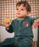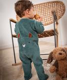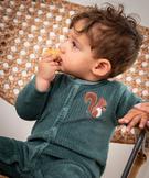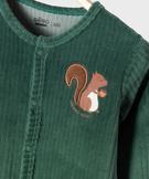 Douillet, craquant et plein de tendresse, ce pyjama dors-bien en velours à côtes plates va vous faire fondre ! Conçu pour le confort des tout-petits, il est confectionné dans un velours tout doux majoritairement en coton, parfait pour garder bébé bien au chaud. Sur le devant, un petit motif écureuil sur la poitrine apporte une touche de délicatesse. Mais la vraie surprise se cache à l’arrière : un grand motif d’écureuil avec oreilles en relief sur les fesses ! Un détail aussi amusant qu’adorable, qui fait de ce pyjama un véritable coup de cœur. Pratique à enfiler grâce à sa fermeture par boutons-pression sur l'avant, du col au pied.