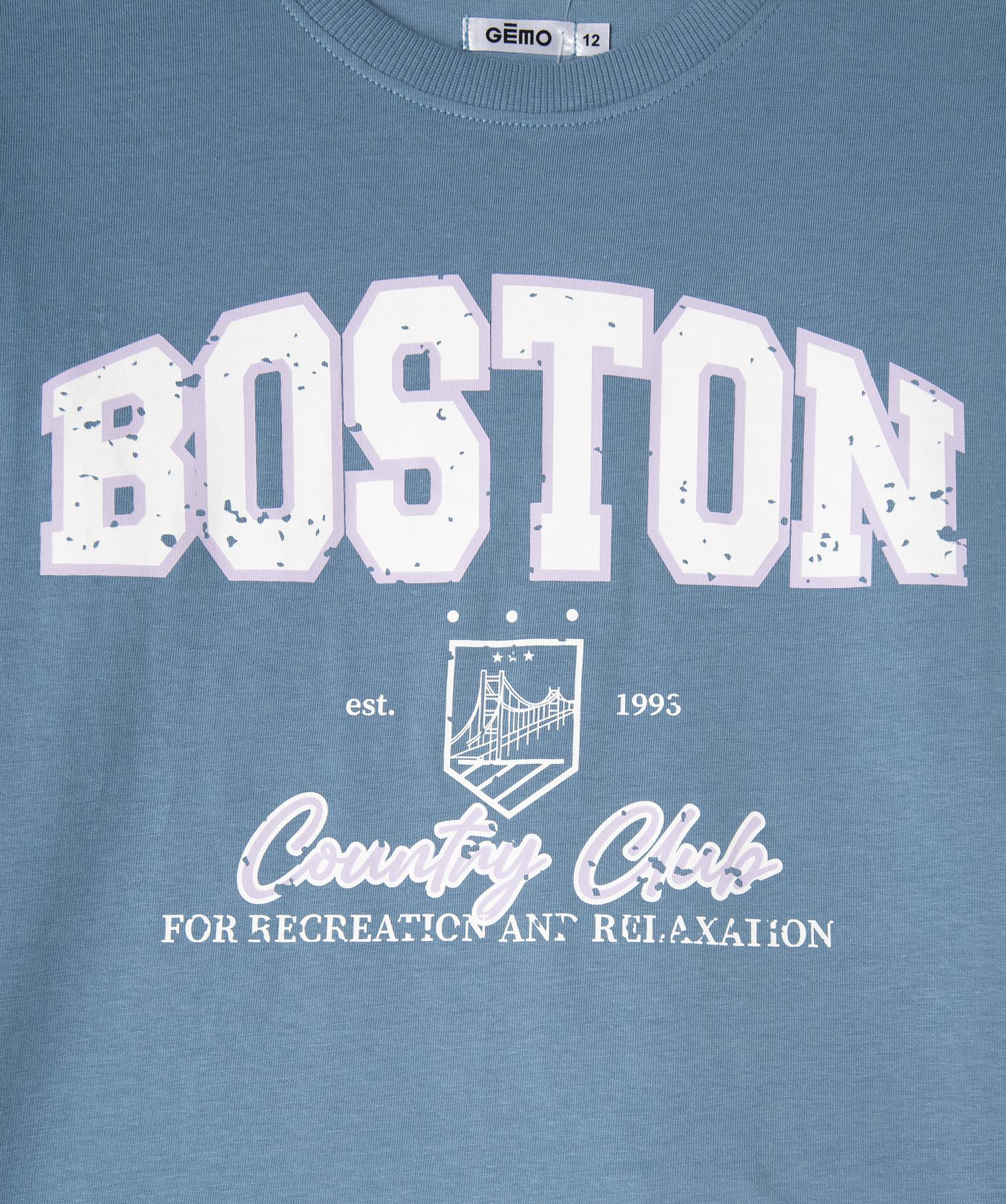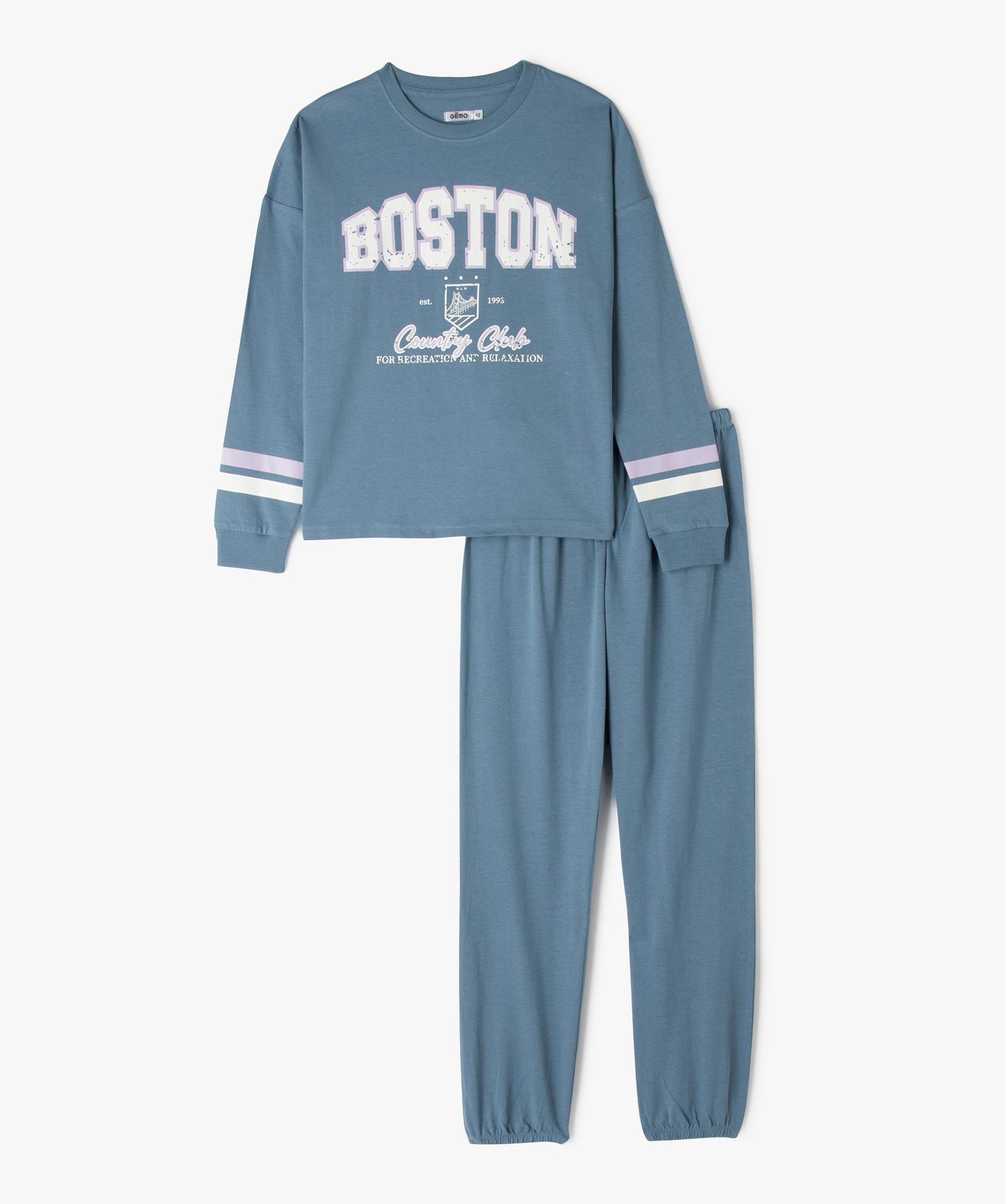 Optez pour un look urbain tendance avec ce pyjama fille orné d'une inscription Boston et de bandes colorées sur les manches. Cet ensemble de nuit peut également être porté comme tenue d'intérieur pour un confort tout au long de la journée. Composé d'un tee-shirt à manches longues et d'un pantalon resserré aux chevilles, ce pyjama en coton garantit un sommeil confortable à la température idéale. Parfait pour les nuits douces et les journées détente, ce pyjama imprimé est un incontournable de la garde-robe de votre fille.