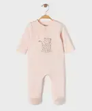 Pyjama en coton ouvert devant motif félin bébé fille rose clair
