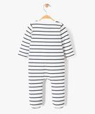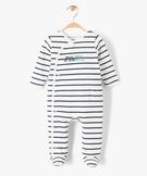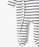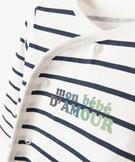 Esprit marinière pour ce pyjama bébé. Ce vêtement de nuit, avec sa forme dors-bien couvrante et sa confection 100% coton, offre à bébé tout le confort nécessaire pour ses temps de sommeil. Pratique pour les parents, le pyjama s'ouvre entièrement sur l'avant par des boutons-pression. On fond pour l'inscription poitrine "Mon bébé d'amour".