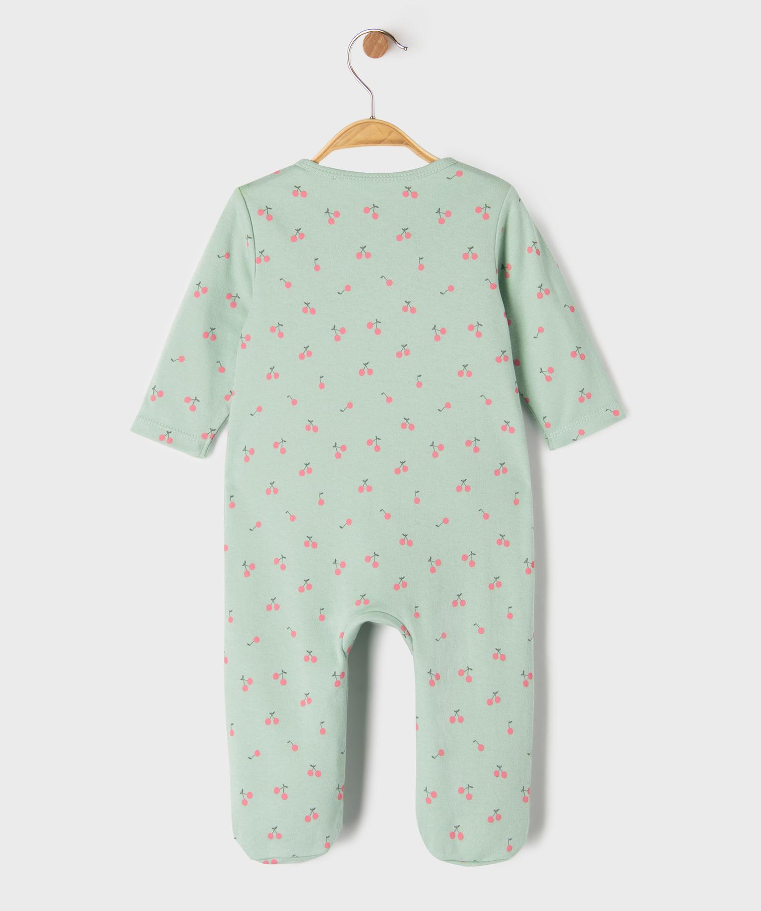 Pyjama en jersey de coton à motifs cerises ouverture zippée devant bébé vert