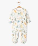 Bien couvrant mais en jersey de coton, ce pyjama bébé est idéal pour la mi-saison. Doté d'un zip, le pyjama avec ouverture sur l'avant s'ouvre intégralement depuis le col jusqu'au pied, facilitant le change et l'habillage. Il est entièrement décoré d'un joli imprimé d'ambiance tropical.
