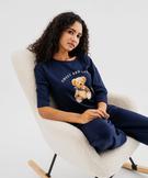 Pyjama en maille douillette avec ourson sur l’avant femme - LuluCastagnette navy