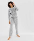Offrez-vous un confort optimal avec ce pyjama femme 2 pièces en maille peluche épaisse, chaude et douce. Le haut à manches longues et col rond s’associe parfaitement avec le bas droit à taille élastiquée. Une coupe confortable et une matière chaleureuse. Idéal pour les soirées cocooning ou les nuits d'hiver, ce pyjama allie style et confort.